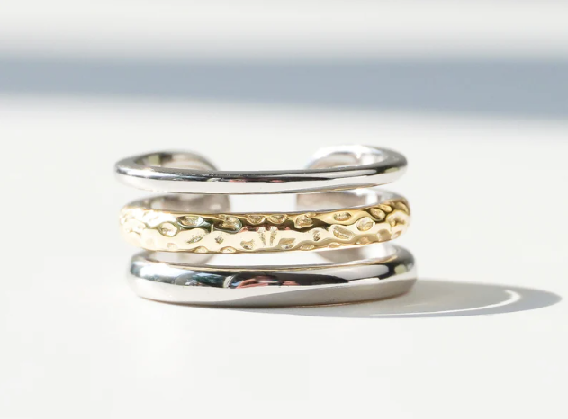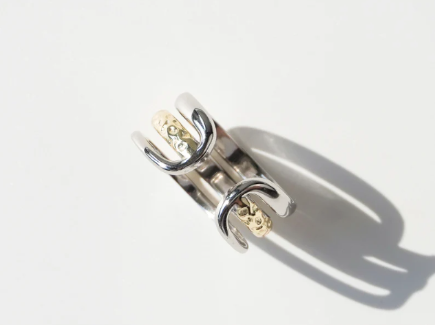 Nuestro anillo Prana de acero inoxidable con un baño de oro 18k, garantiza durabilidad y resistencia, asegurando que puedas disfrutar de su belleza durante años. Con una medida ajustable, este anillo se adapta cómodamente a cualquier dedo.